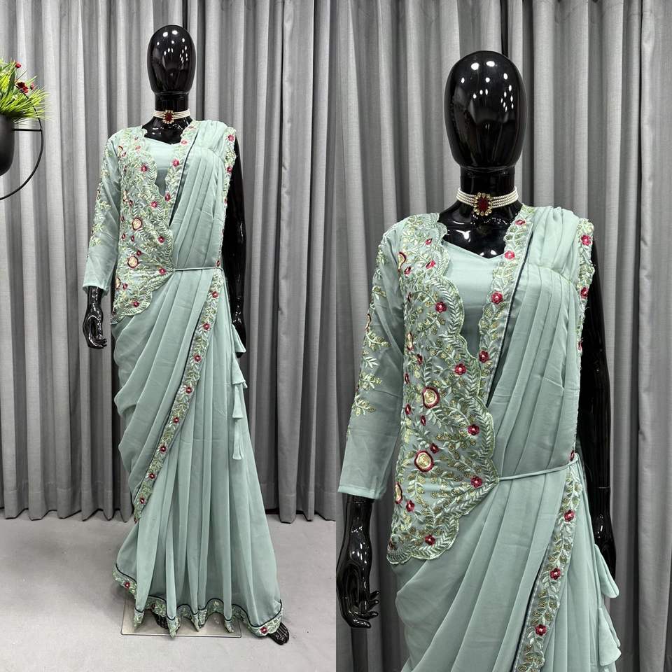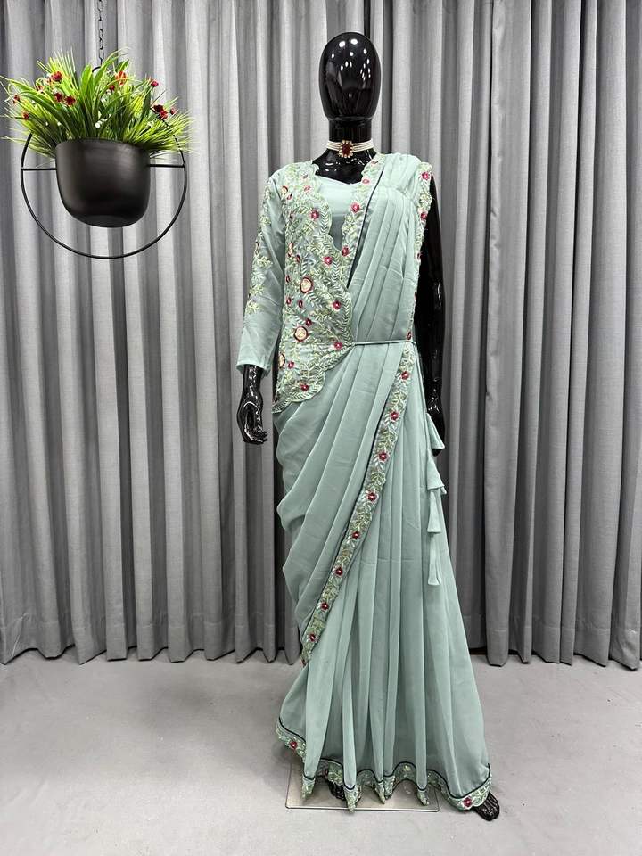 Fancy Trending Faux Georgette Saree Blusa con chaqueta