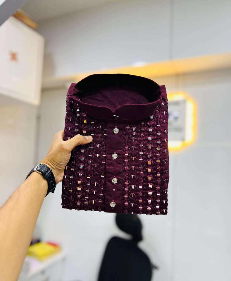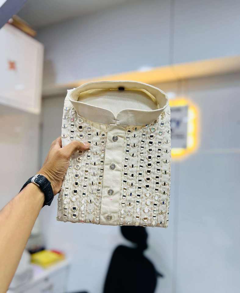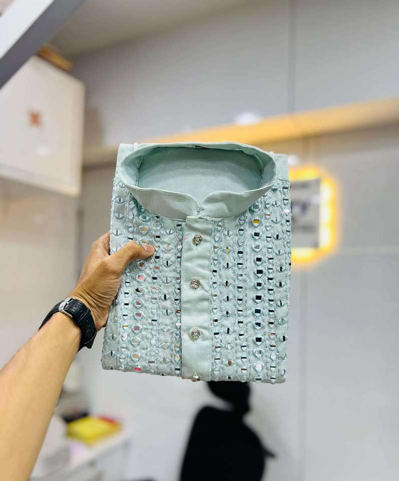 El último traje de diseñador, Pantalón de algodón Kurta de seda suave a pedido con espejo Real, diseño de trabajo manual en el cuello, exportador mundial