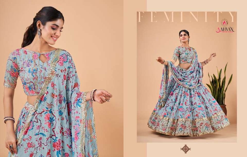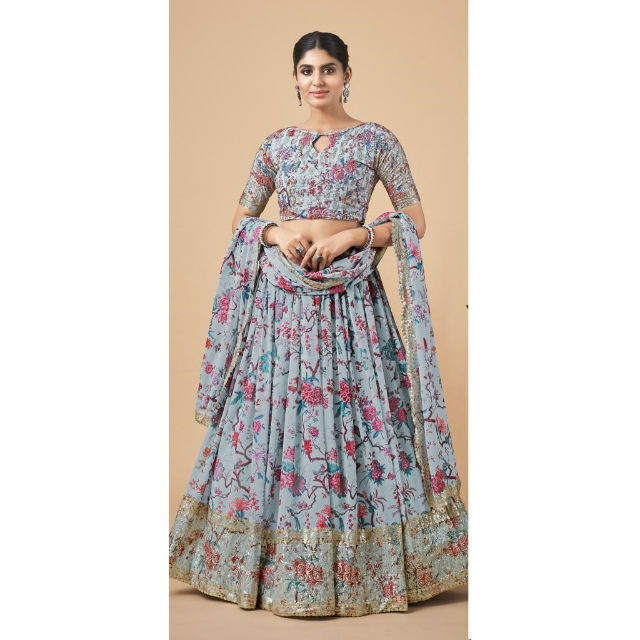 Nombre del producto:Último diseño Georgette bordado trabajo Lehenga con blusa Dupatta