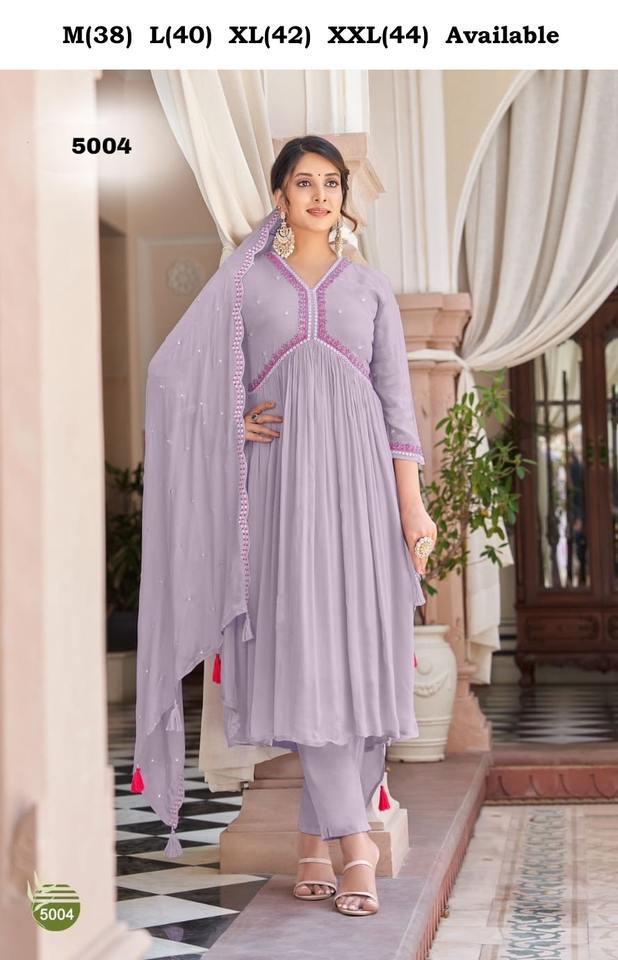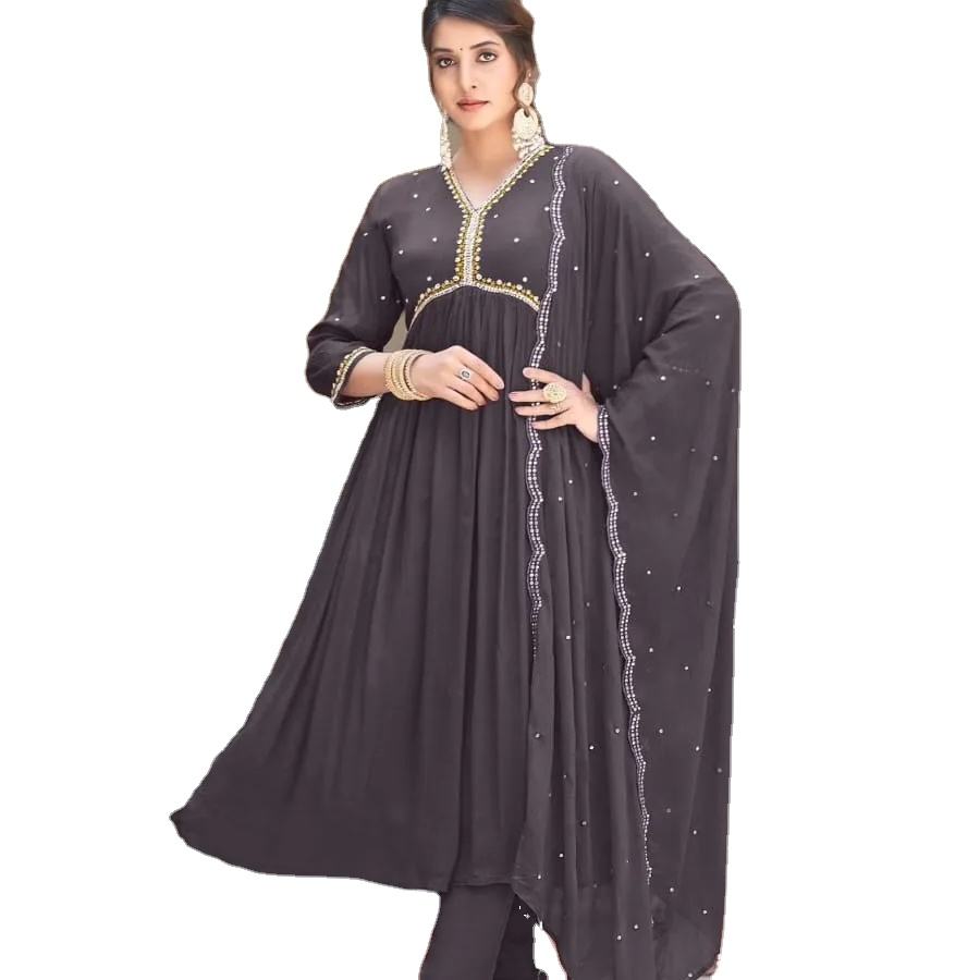 Vestido de Anarkali de trabajo hecho a mano con bordado de Chinon puro de diseñador de Fab Zone
