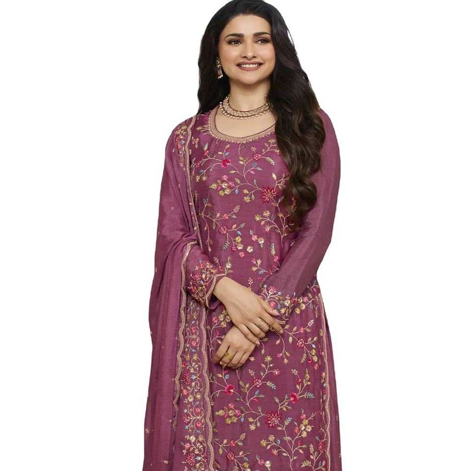 Traje Sharara de trabajo de bordado de varios hilos de seda pura Chinon de último diseñador de Fab Zone