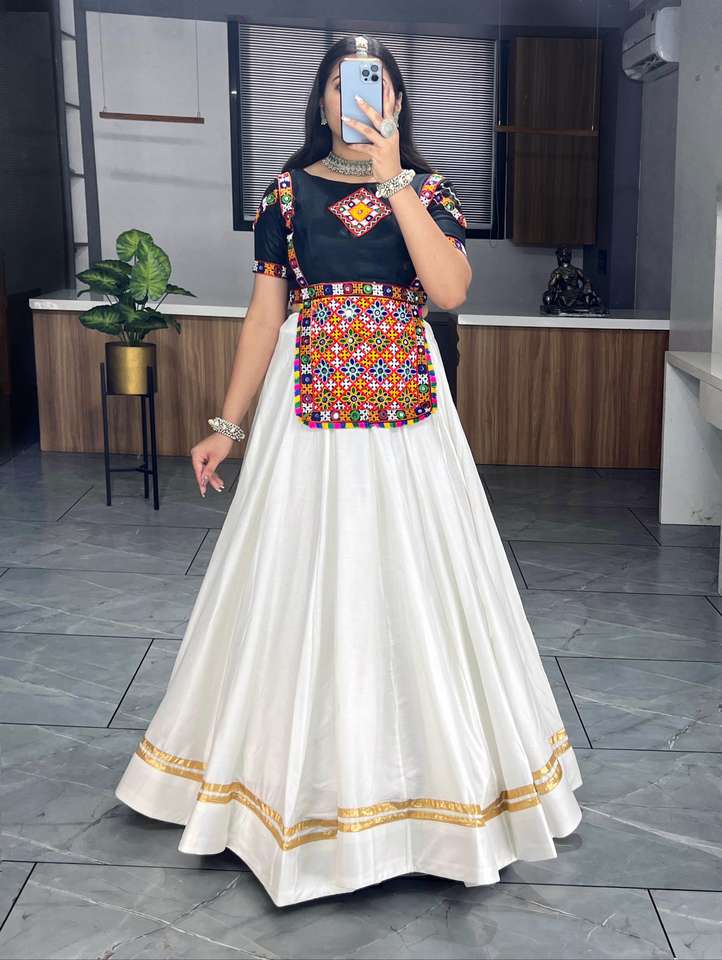 El último diseñador de algodón puro Gamthi Patch Work Lehenga Choli de Fab Zone para Festival Wear