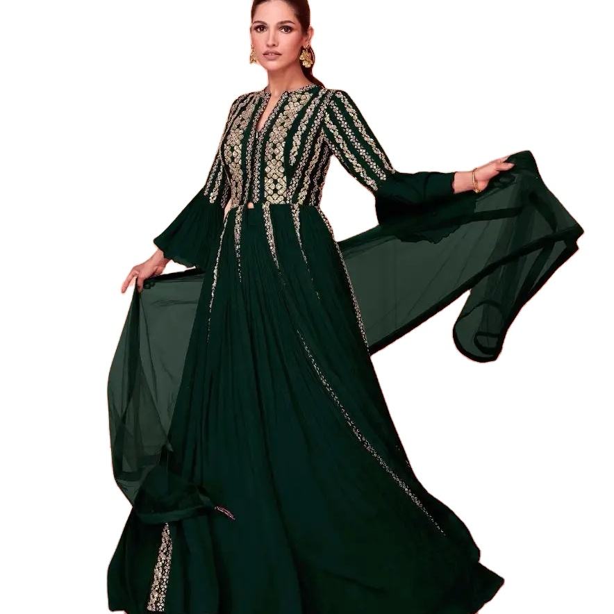 Vestido de trabajo de secuencia de bordado de Georgette puro de último diseñador por Fab Zone