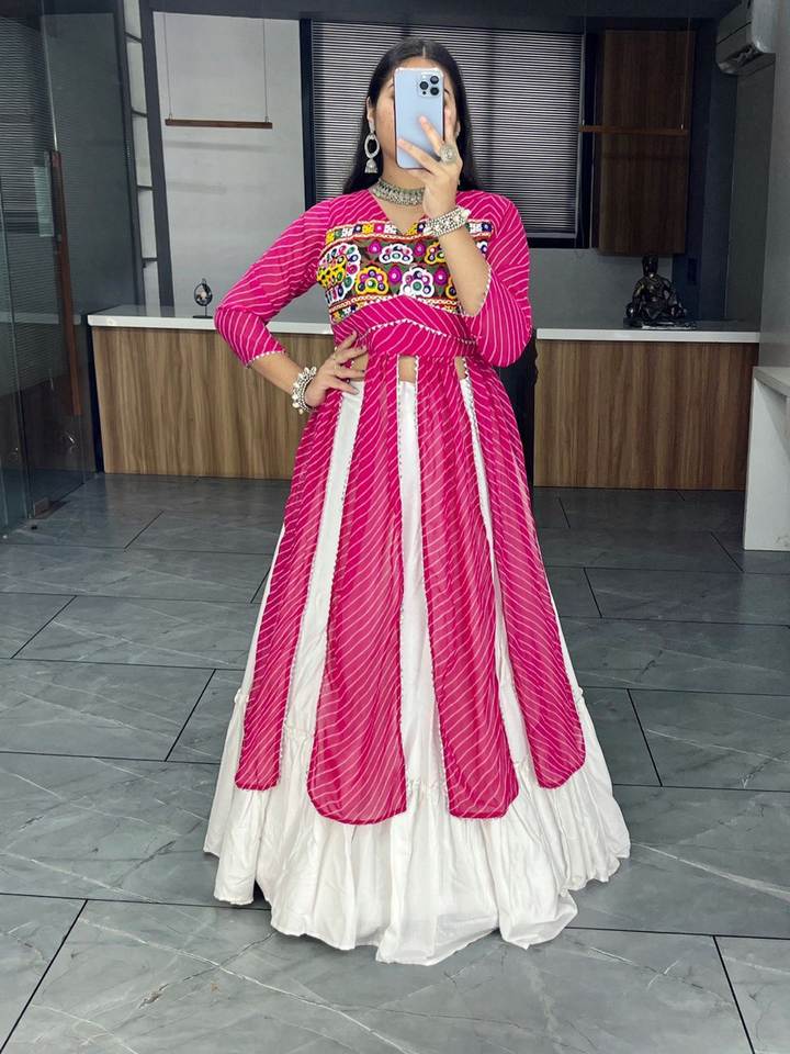 Último diseñador puro rayón algodón Badhani impreso espejo trabajo Lehenga Choli por FabZone