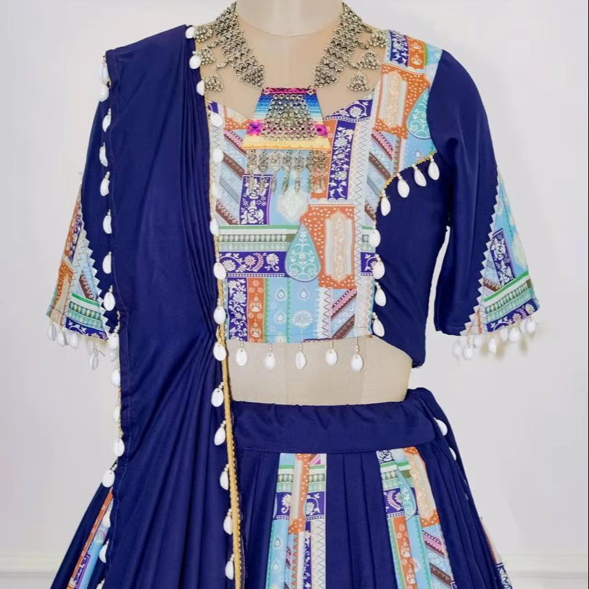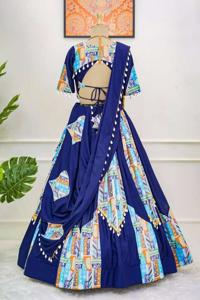 Último diseñador Pure Rayon Printed Kodi Lace Lehenga Choli por FabZone