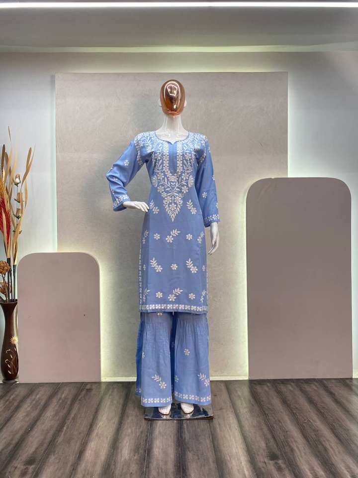 Traje Sharara de Última Moda para Mujer, con Bordado de Hilo de Rayón de Alta Calidad y Piel Sintética, para Bodas, por FabZone