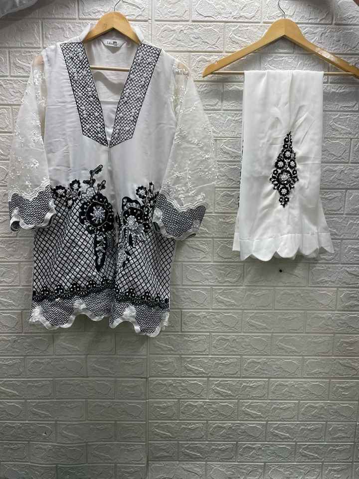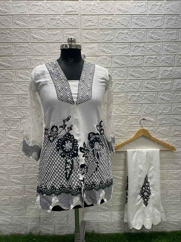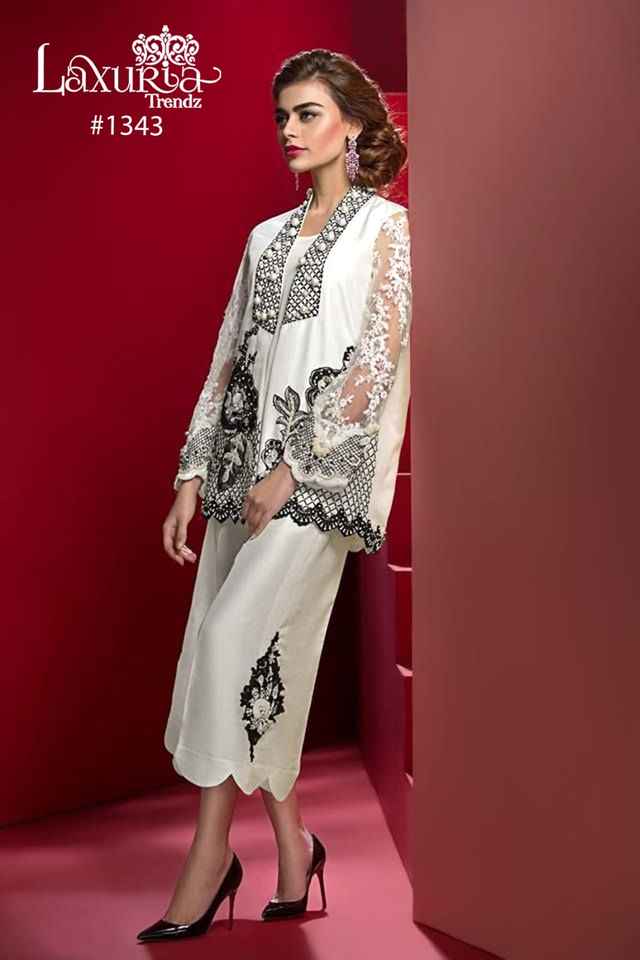Traje Palazzo de secuencia de bordado Georgette de satén de último diseñador de Fab Zone