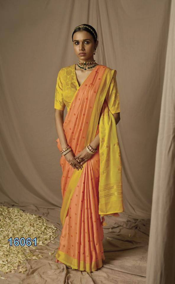 El último Sari de trabajo de hilo de seda suave de diseñador de Fab Zone