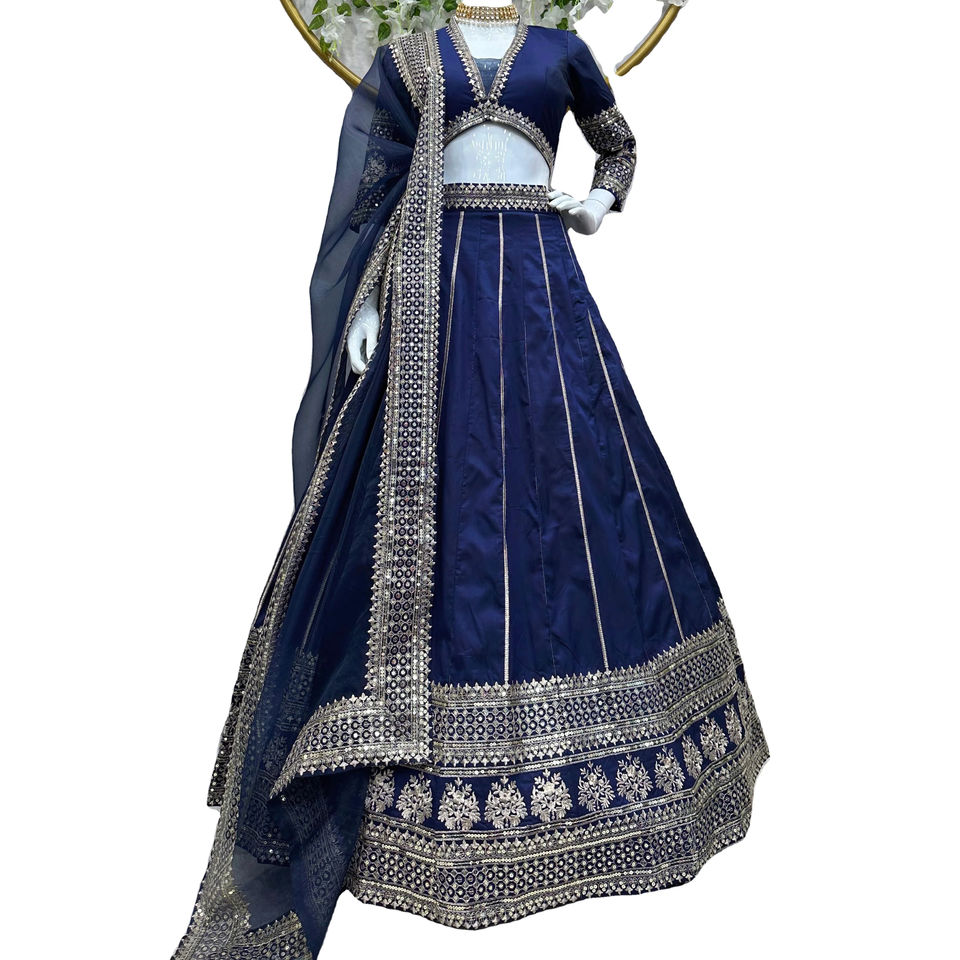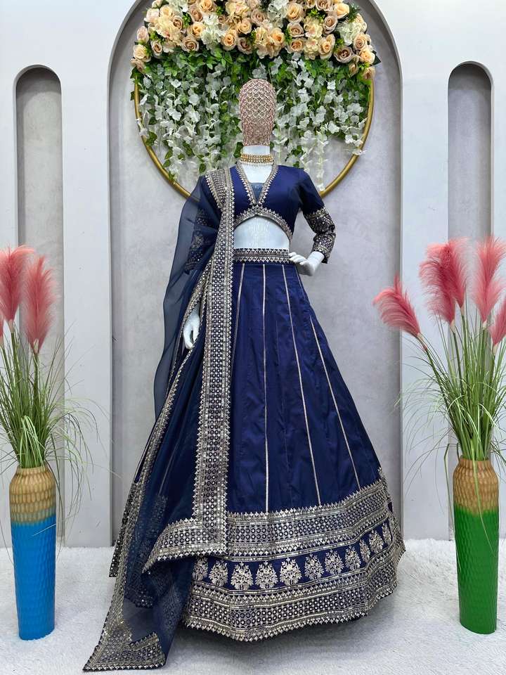 Último diseñador Tapeta Silk Thread Sequence Work Lehenga Choli por Fab Zone