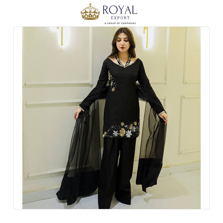 Última colección de ropa informal tradicional de diseñador de seda crepé y seda de tejido Dupatta Farsi Salwar Suit para ropa festiva