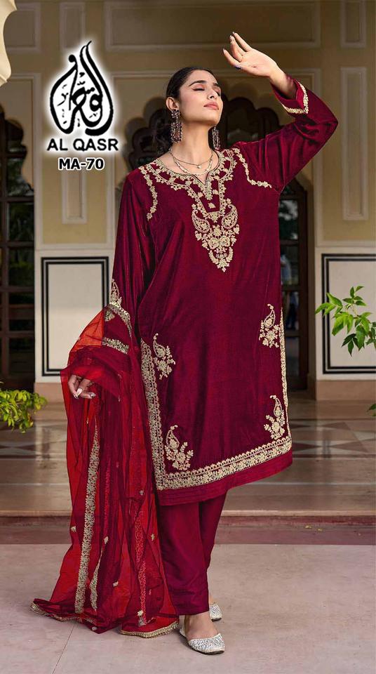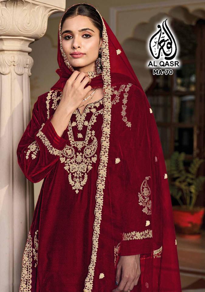 El último traje de Salwar de trabajo de secuencia de bordado de terciopelo de diseñador por Fab Zone