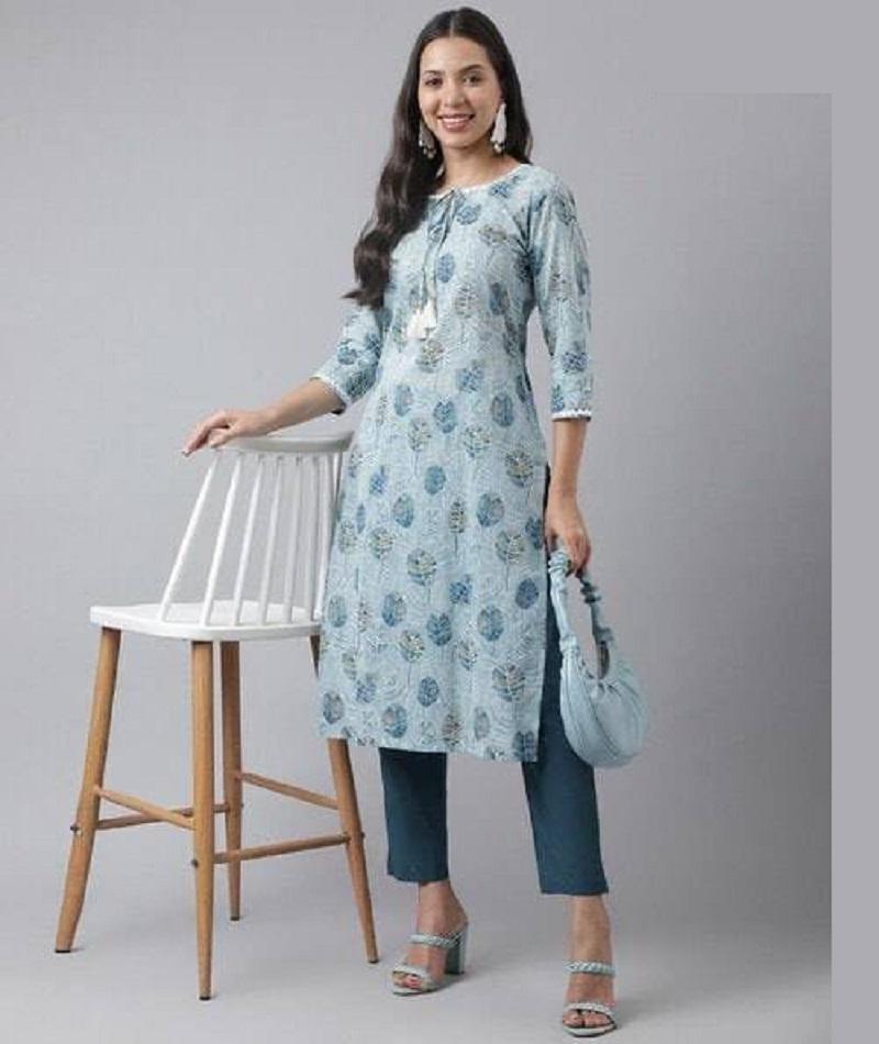 Las últimas mujeres de diseñador usan Kurtis de algodón con colecciones de Kurtis simples de trabajo impreso con ropa y vestido indios de precio más bajo