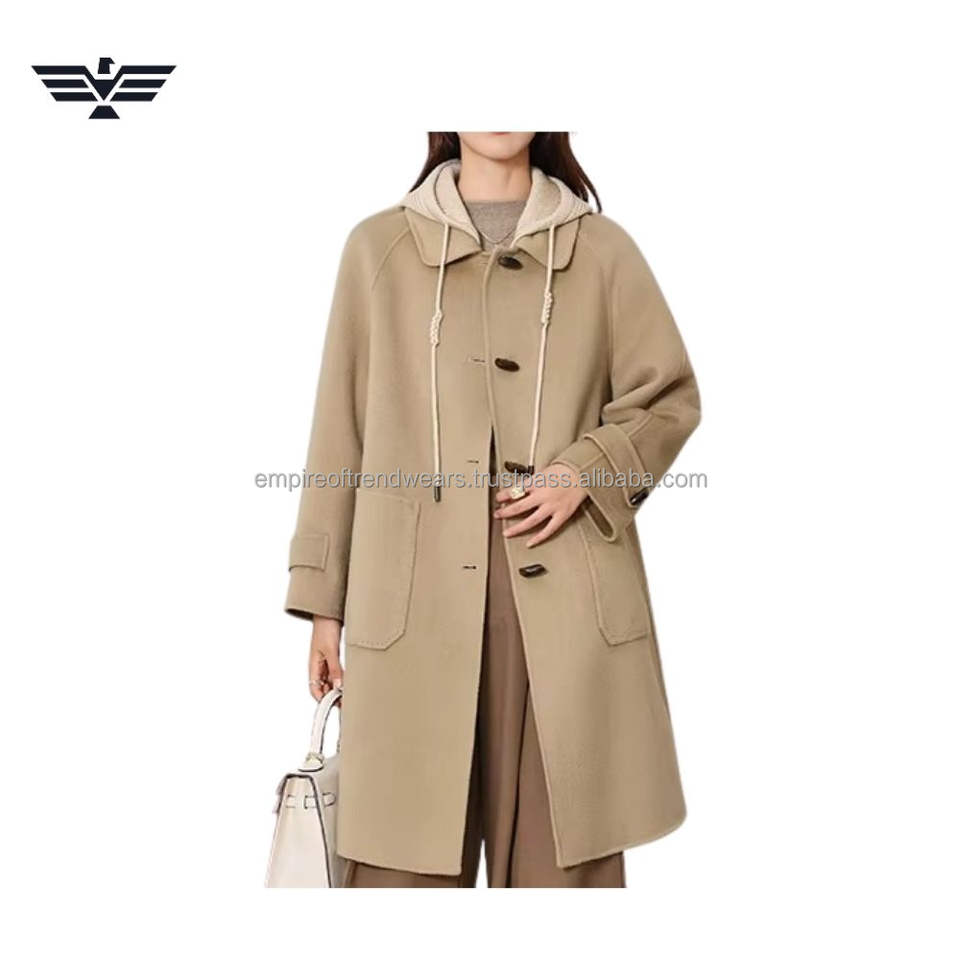 Abrigo de Invierno Casual Cálido de Primera Calidad para Mujer, Elegante, de Lana, con Cierre de Botones, Bolsillos, Color Personalizado, Relleno de Plumón