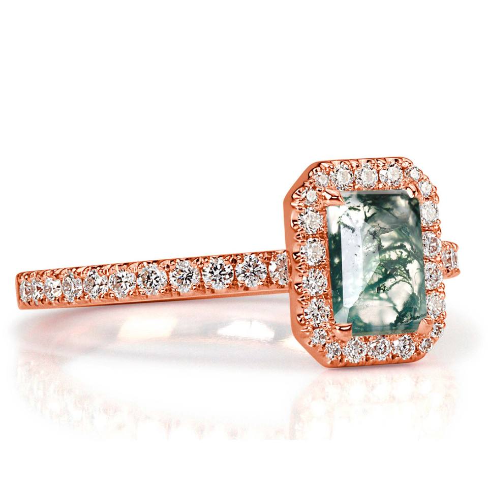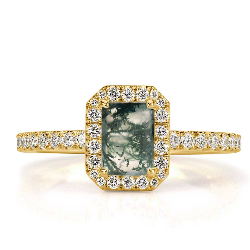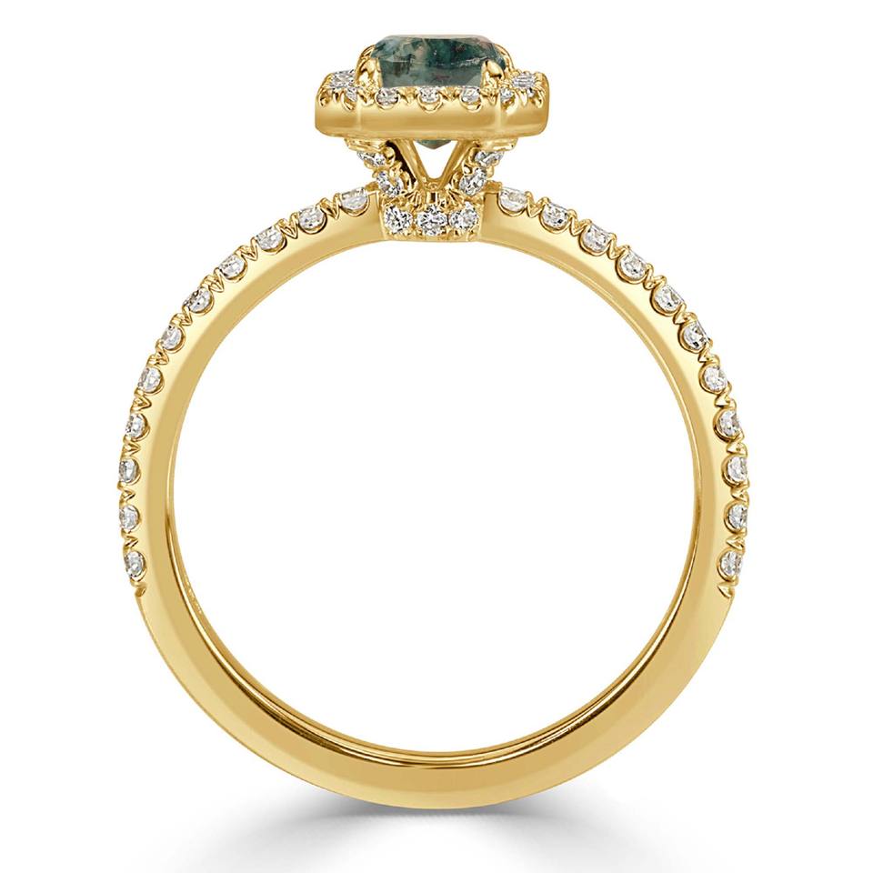 Anillos de Oro Puro Ligeros de Diseño Moderno con Diamantes Cultivados en Laboratorio y Ágata Musgosa de Alta Colección con Engaste de Bisel para Bodas