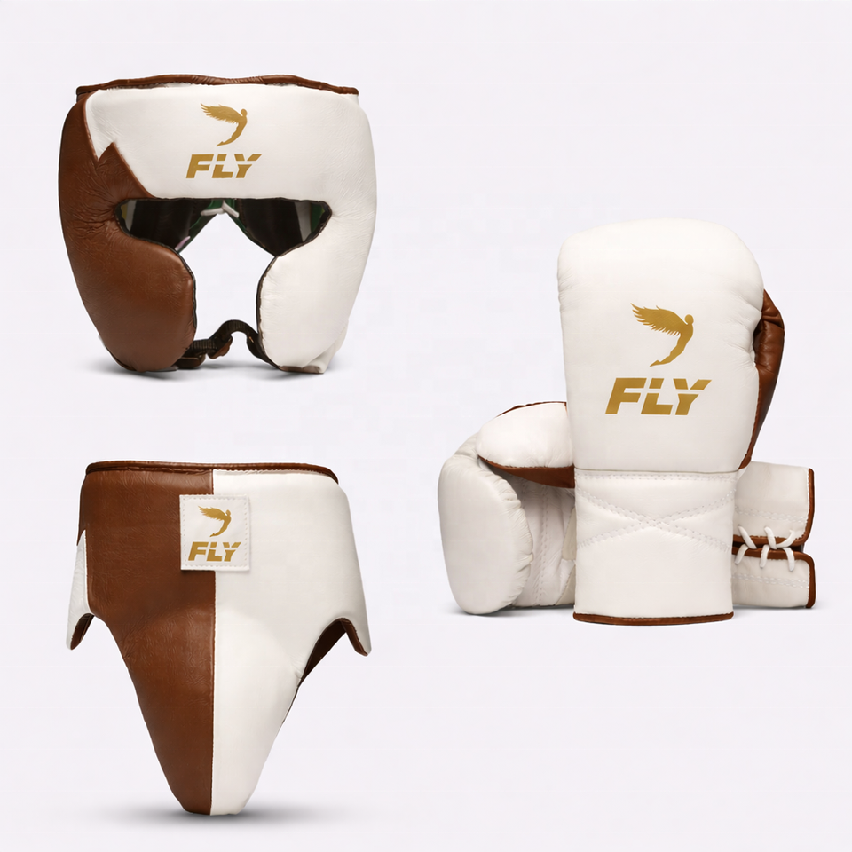 Último Modelo Fly: Kit de Boxeo Personalizado Amarillo y Blanco para Entrenamiento - Guantes de Boxeo - Protector de Cabeza - Protector Inguinal - Kickboxing