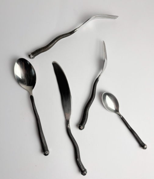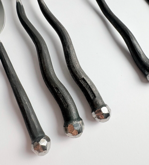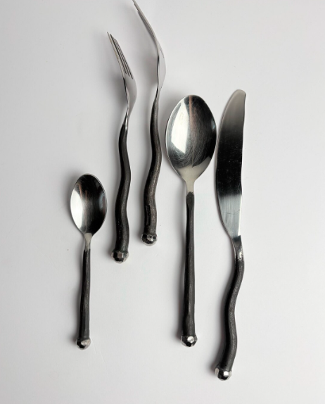 Juego de Cubiertos Grises de Última Moda, Vajilla para Eventos, Juego de Cubiertos de Acero Inoxidable Aptos para Lavavajillas, Cubiertos al por Mayor, Estilo Forjado a Mano