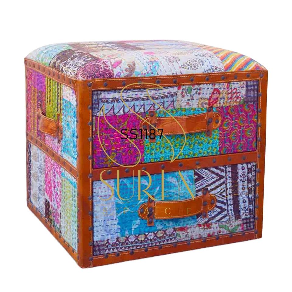 Lo último en taburete de diseño de cajón cosido a mano de tela tradicional única artesanal taburete otomano hecho a mano