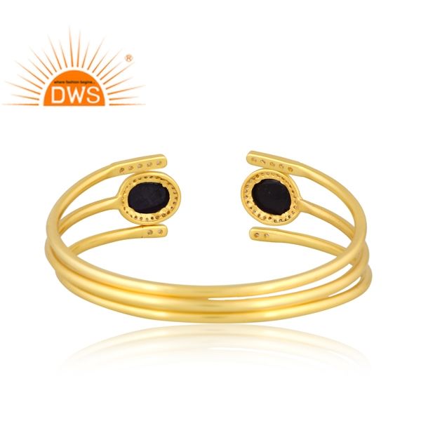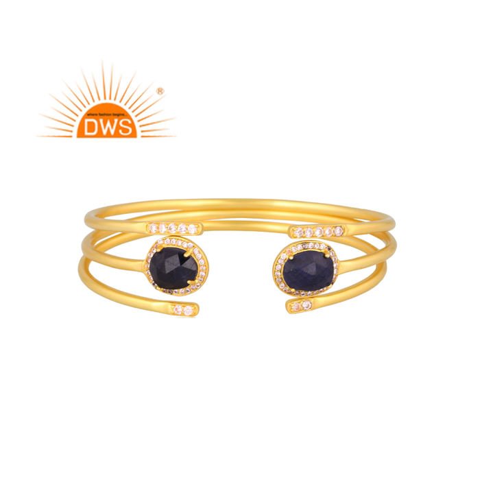 Último diseño hecho a mano 18K chapado en oro Natural Cz y zafiro azul Gemstone Cuff Bangle Demi Fine Jewelry Manufacturer