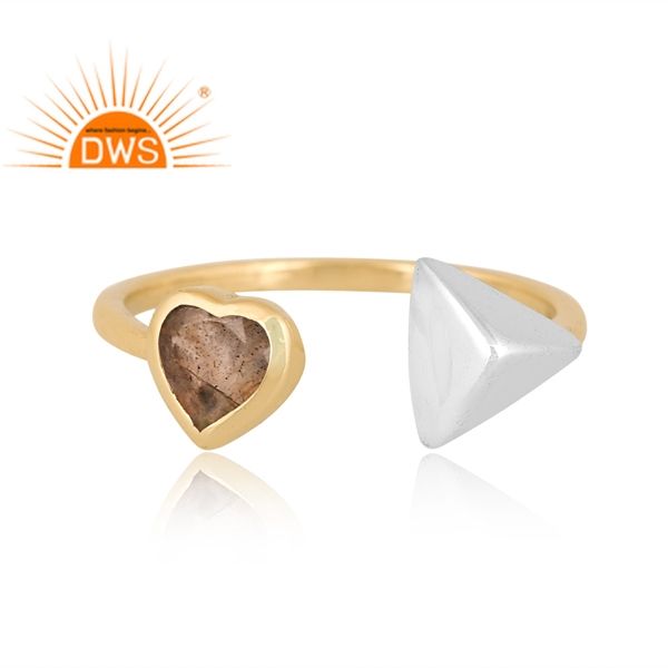 Último diseño hecho a mano 18K chapado en oro labradorita natural anillo ajustable Demi joyería fina para mujer regalo para ella