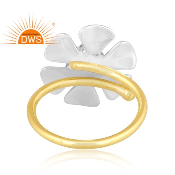 Último diseño hecho a mano 18K chapado en oro Natural labradorita piedra preciosa diseño Floral anillo apilable Demi joyería fina fabricante