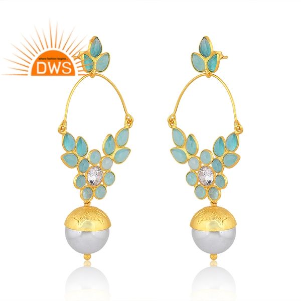 Último diseño hecho a mano 18K chapado en oro Natural múltiples piedras preciosas pendientes colgantes Demi joyería fina fabricante