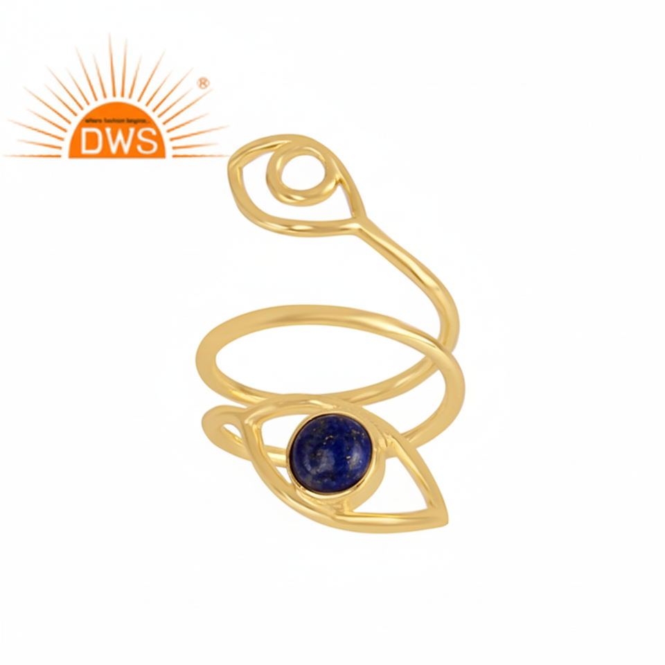 Último diseño hecho a mano 18K chapado en oro Natural lapislázuli piedra preciosa mal de ojo forma anillo Demi joyería fina fabricante