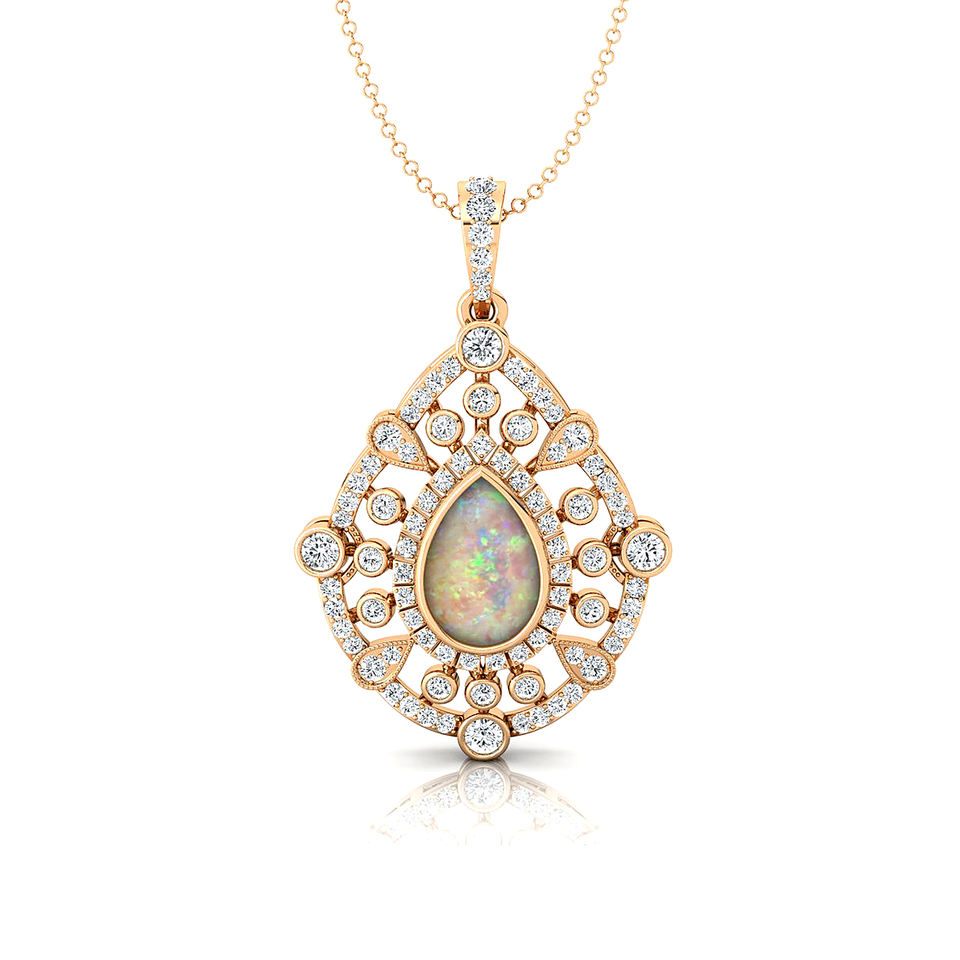 Colgante de oro macizo de 18 quilates con diseño hecho a mano, adornado con piedras preciosas de ópalo etíope natural y diamantes reales a precios a granel