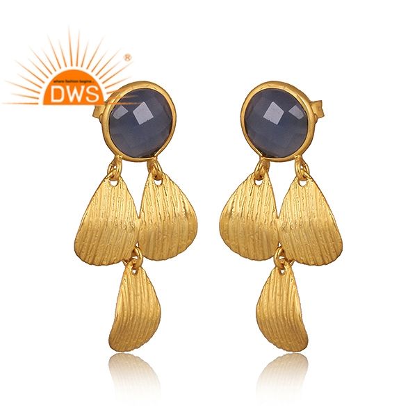 Último diseño hecho a mano Natural Hydro Blue Calcedonia piedra preciosa colgante pendiente personalizado joyería fabricante