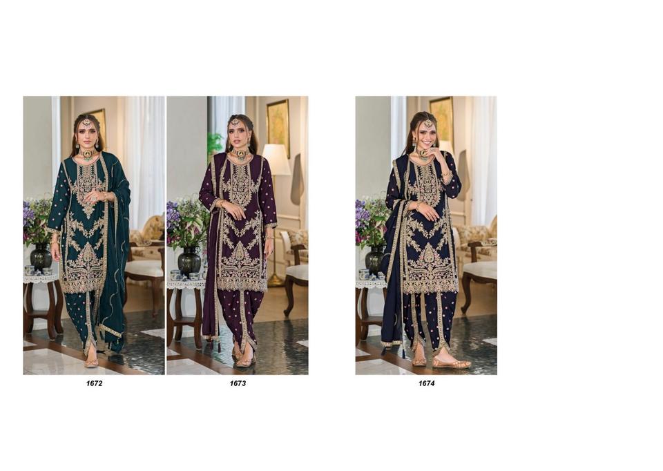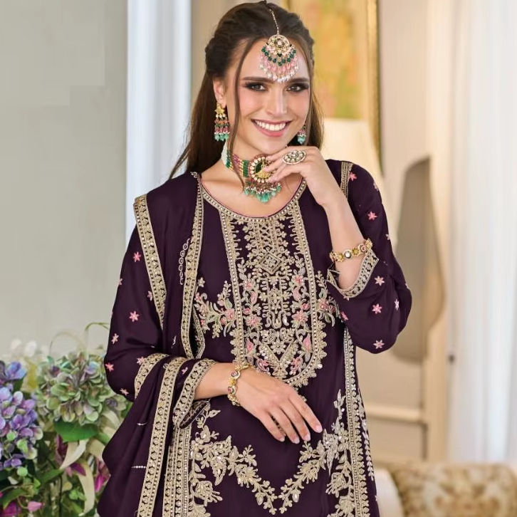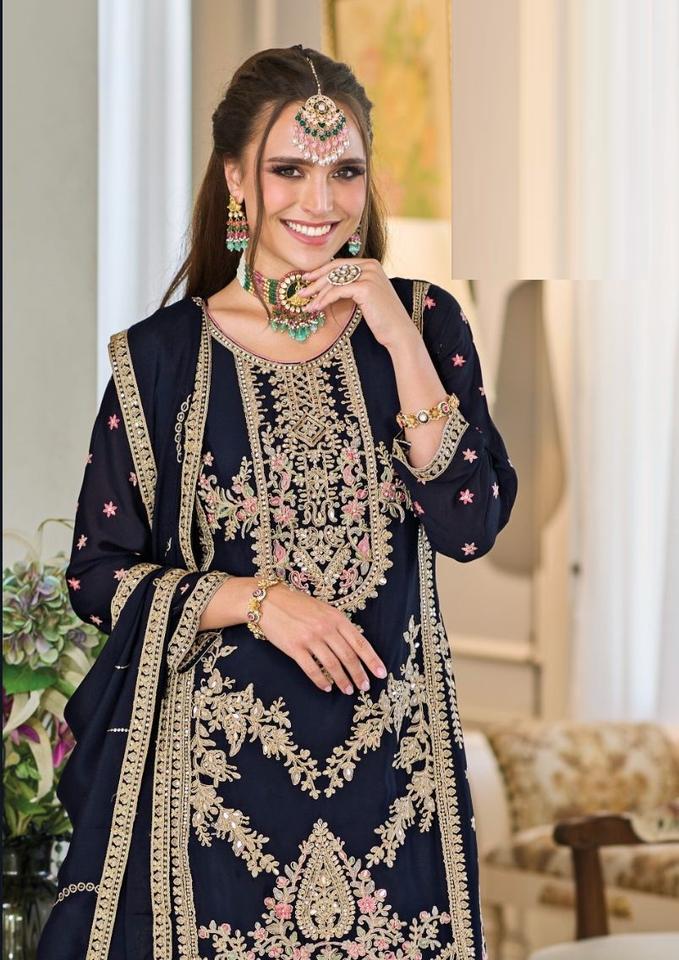 El último Chinon pesado con trabajo de bordado Kurti y pantalón de Chinon pesado con trabajo de bordado Dupatta