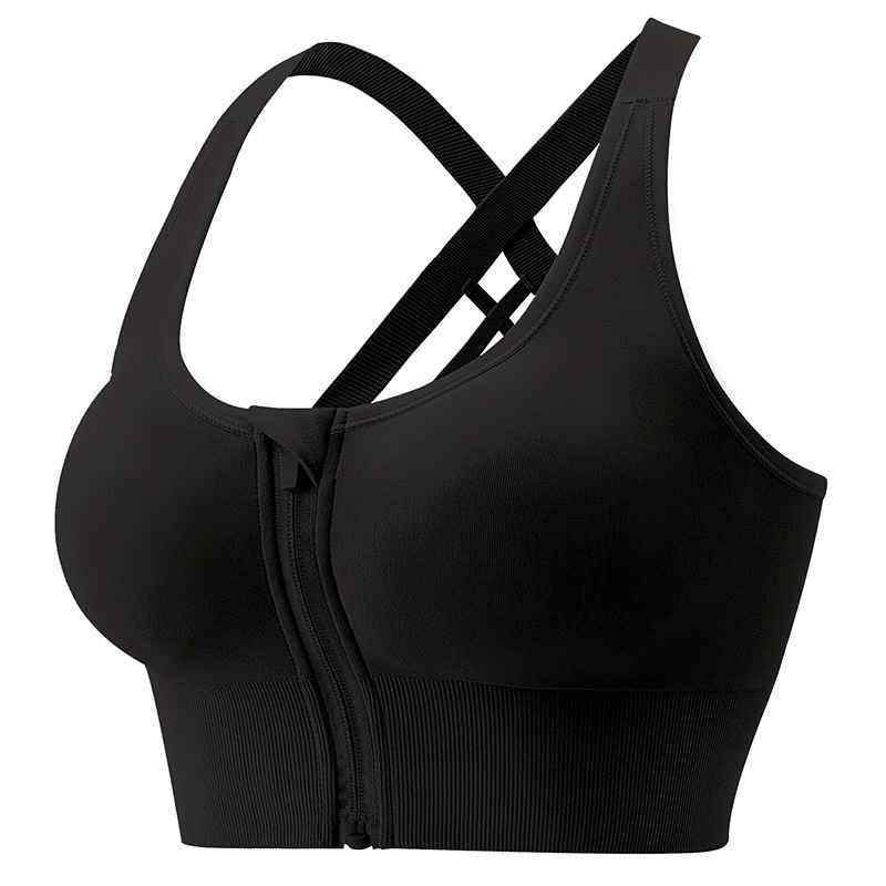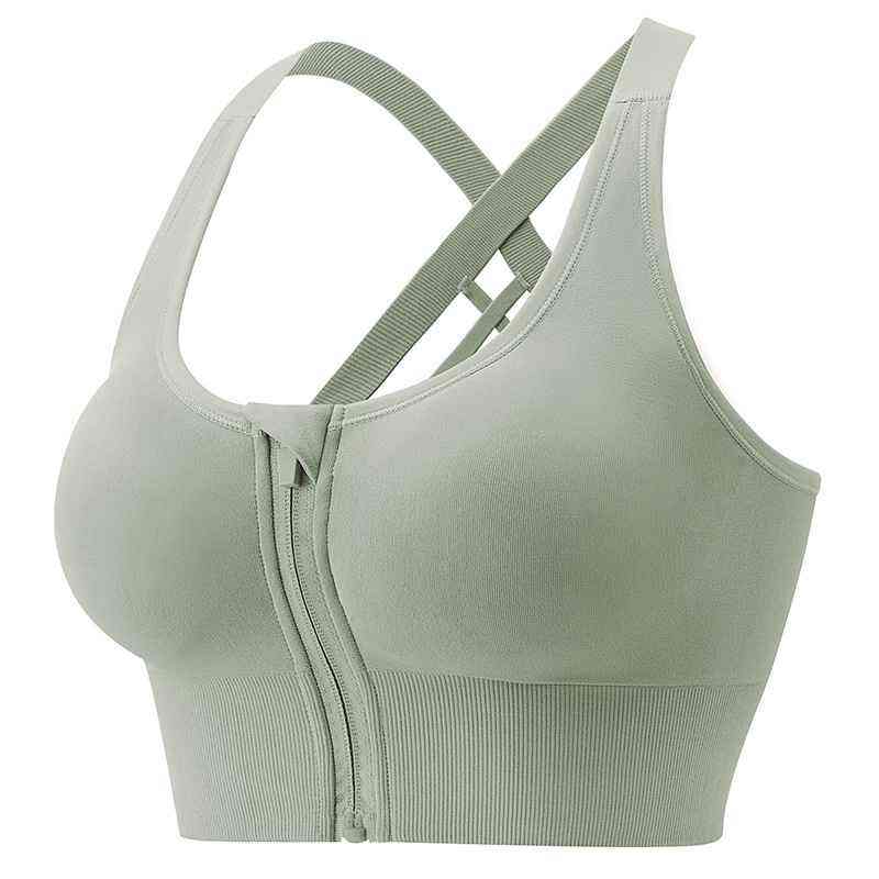 Sujetador deportivo de alta intensidad con cremallera frontal, antivibraciones, para mujer, con efecto push-up, antideslizante, para fitness, talla adulta, sin costuras, sin espalda, cómodo de usar.