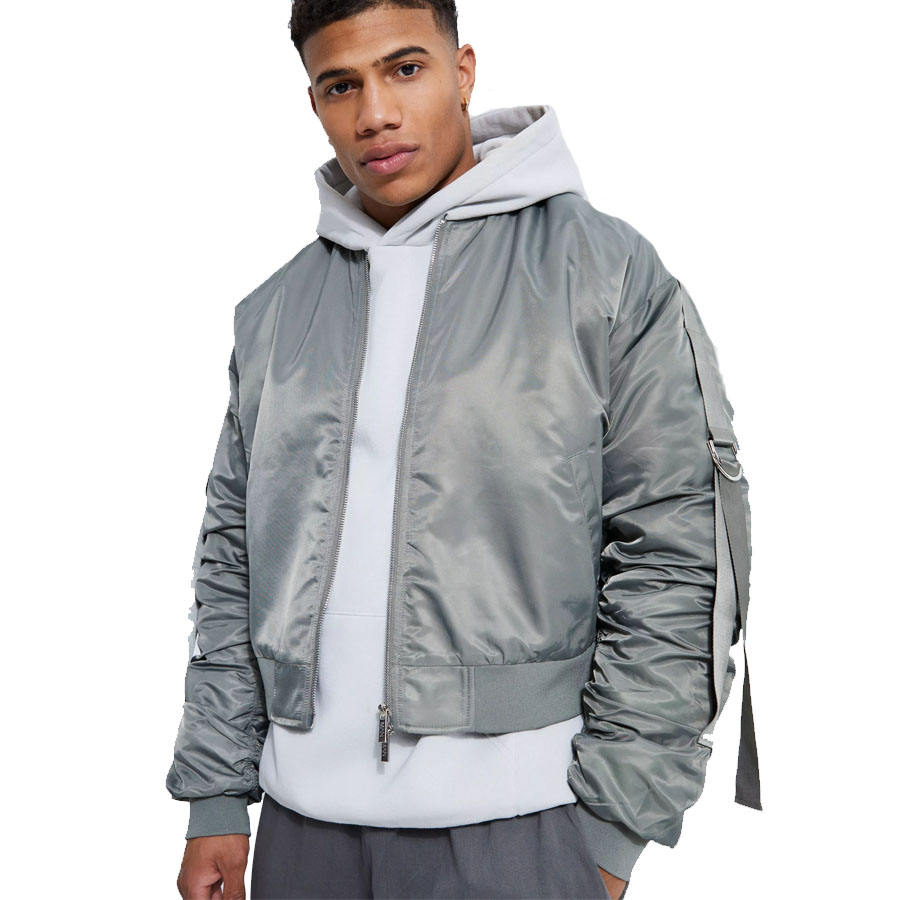 Elegante chaqueta bomber recortada para hombre 100% piel de poliéster High Street último diseño de Hip Hop correas mangas Casual al aire libre invierno