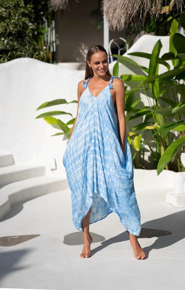 Última colección caliente Tie Dye Maxi Kaftan Gypsy Chic algodón cuello en V sin mangas ajuste suelto cómodo hasta el suelo Natural