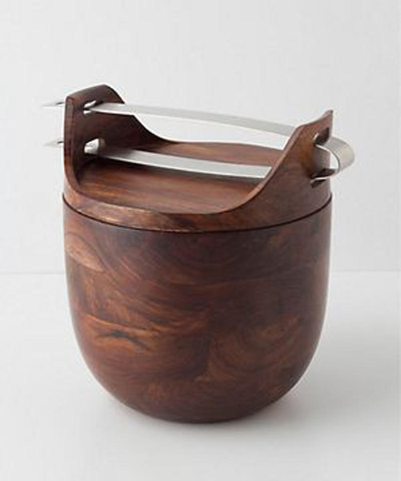 Cubo de hielo con tapa para el hogar, bar, vino y cerveza, decoración de cubo de hielo, Color marrón, diseño moderno, soporte para cubos de hielo de Metal y madera