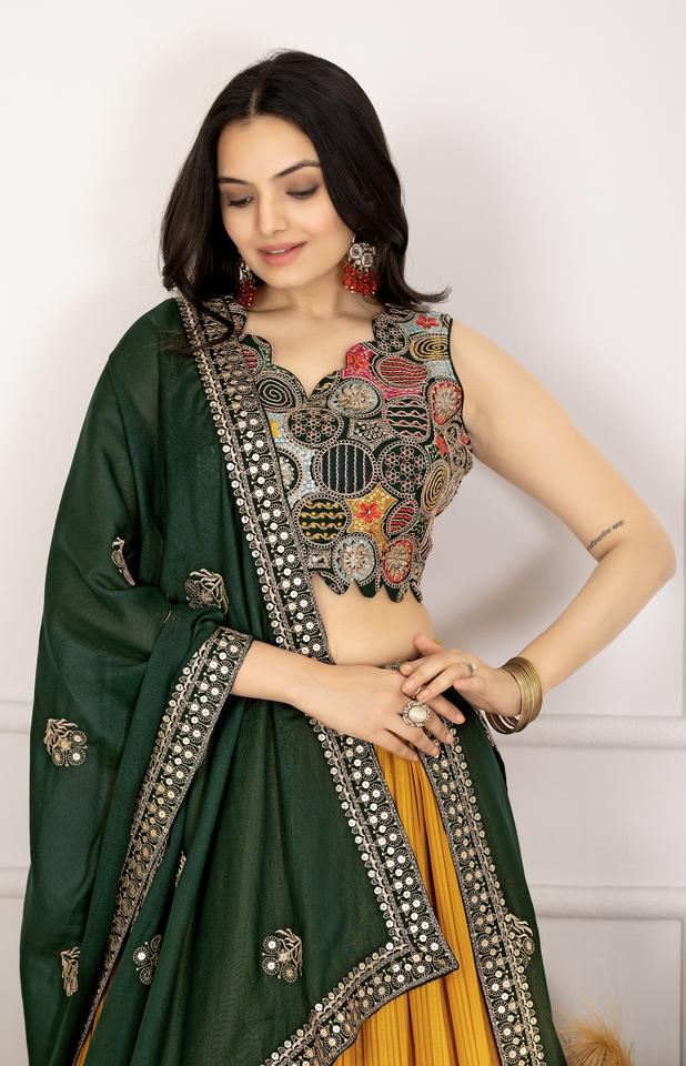 El último diseñador indio Lehenga Choli Gorgeous Traditional Star Fox Georgette Fabric Plain con trabajo de arrugas
