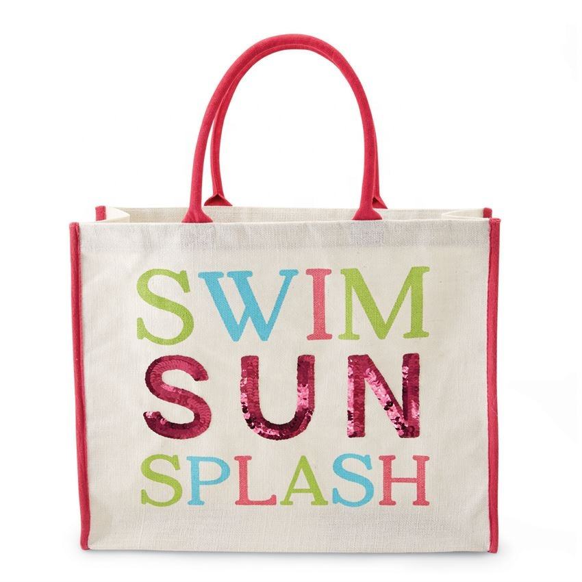 Última bolsa de transporte de yute ecológico reutilizable logo yute bolsa de mano personalizada yute bolsa de mano floral