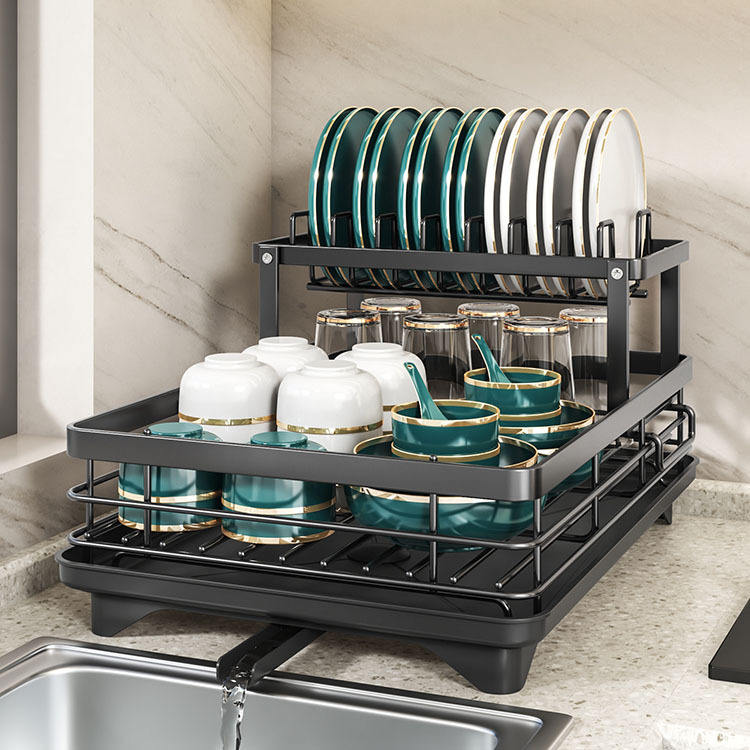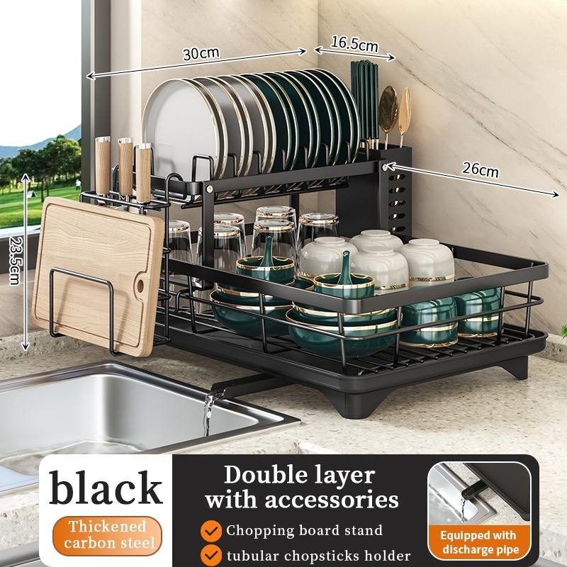 Escurridor de platos de 2 capas para cocina, escurridor de encimera de alambre de Metal, escurridor de secado de platos, estante organizador con soporte para utensilios