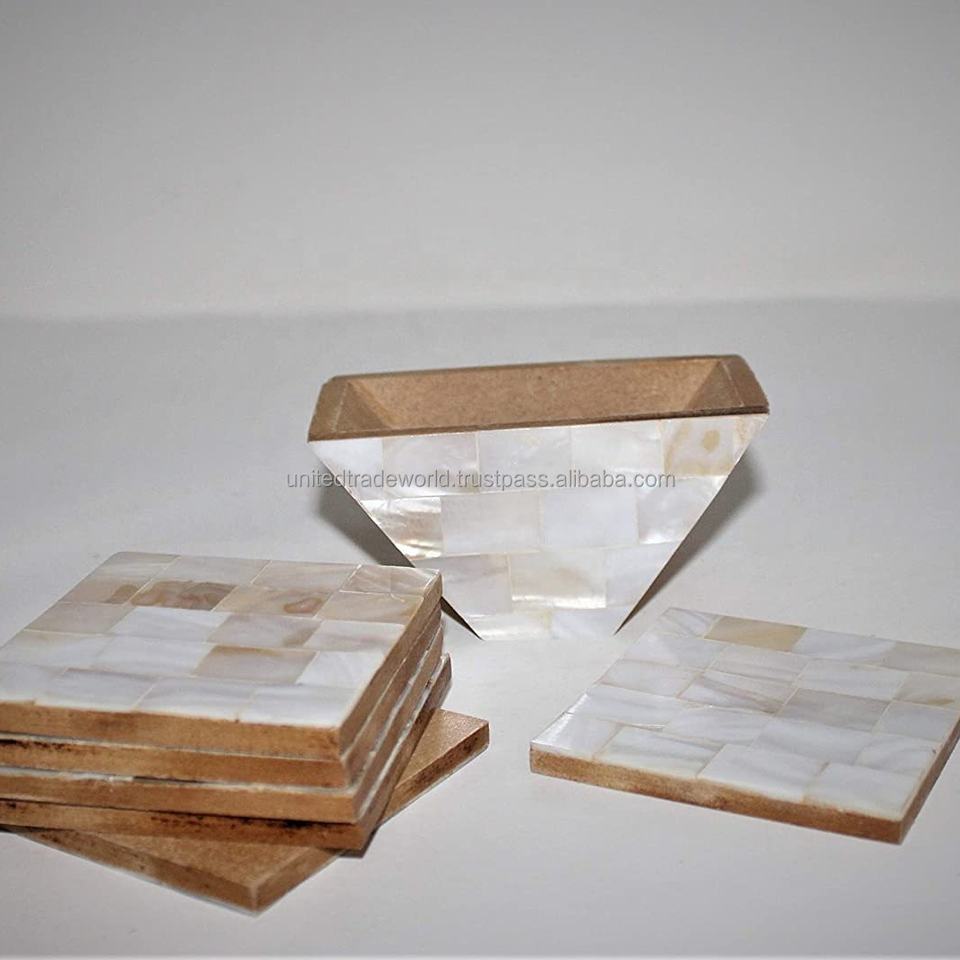 Posavasos Ecológicos Clásicos de MDF con Incrustaciones de Madreperla, Embalaje de Cartón United Trade World, Alfombrillas Multifuncionales