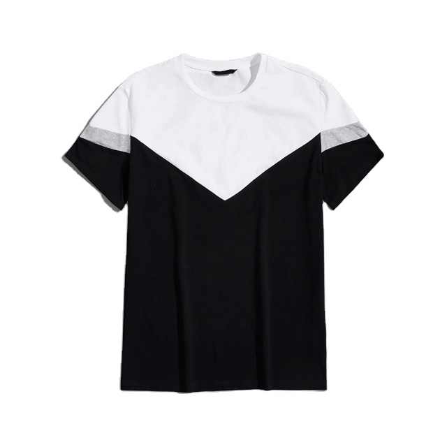 Camiseta de Cuello Redondo con Bloques de Color para Hombre, Ropa Masculina de Verano, Camiseta de Manga Corta