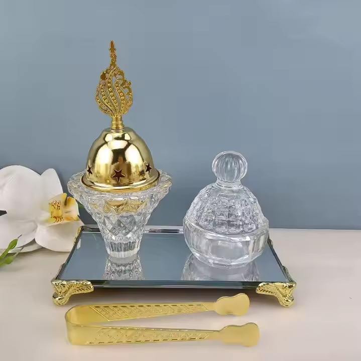 El último soporte de quemador de carbón de cristal de incienso de Metal con increíble soporte de incienso aromático para cuenco para decoración religiosa