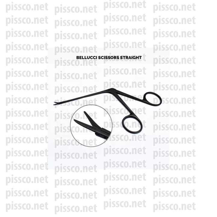 Bellucci-Micro tijeras de oreja de 75mm y 4mm, último modelo, cuchillas curvadas recubiertas de PTFE, acero inoxidable alemán, hechas por Pissco paquistaní