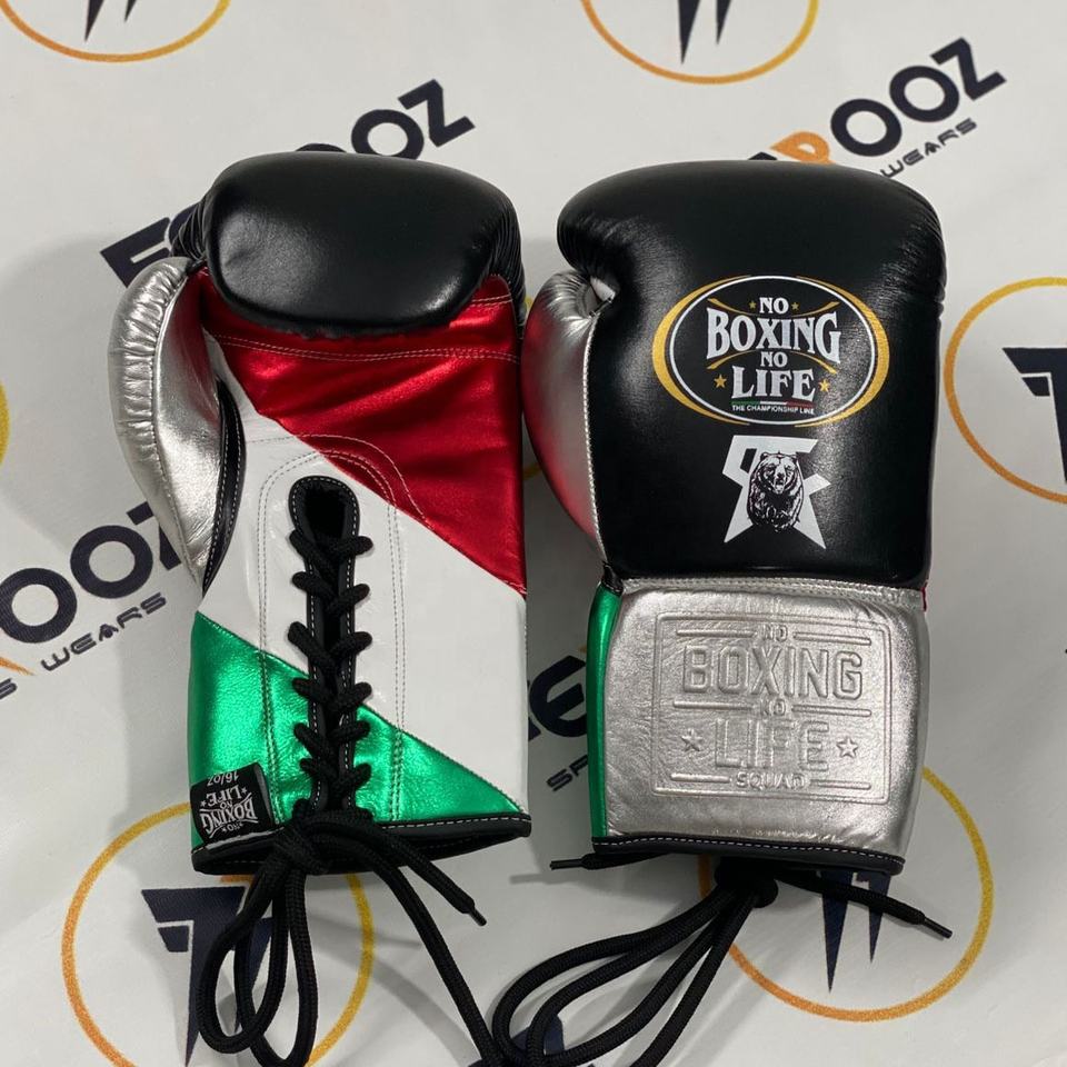 Último Modelo No Boxing No Life, Guantes de Boxeo con Cordones en Verde, Blanco, Rojo y Negro, Precio al por Mayor, Guantes Personalizados con Nombre