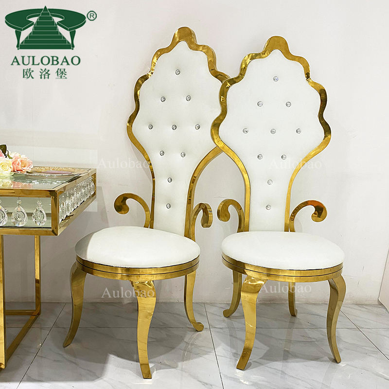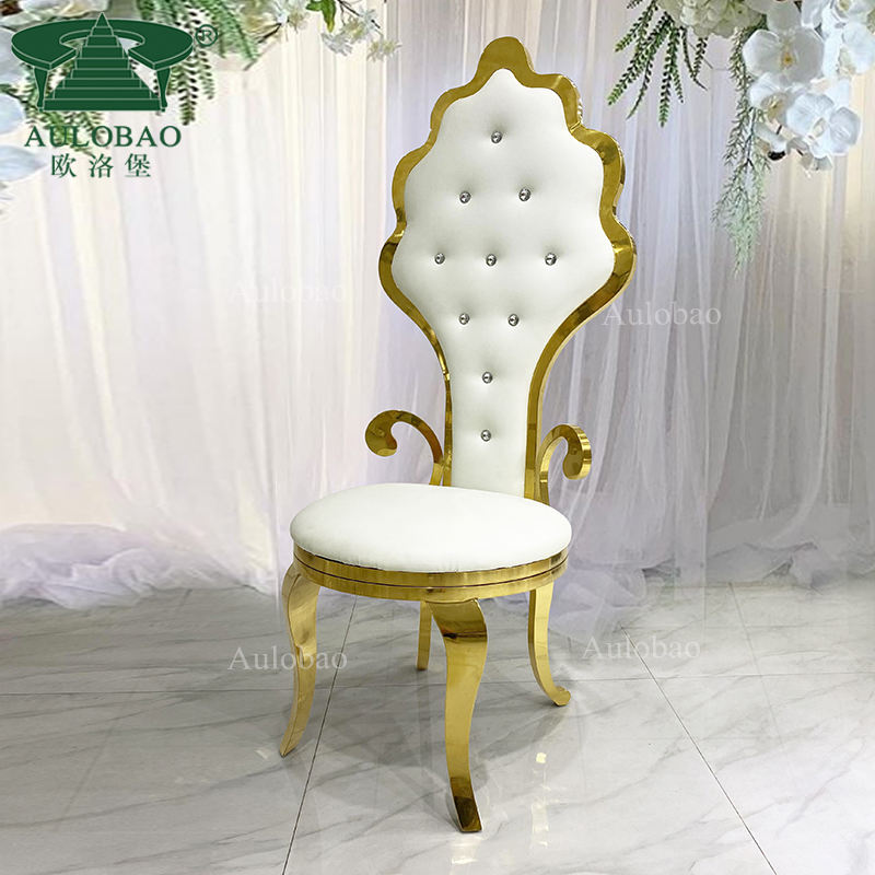 Último modelo de sillas de boda con respaldo alto de acero inoxidable de oro real para eventos con brazo