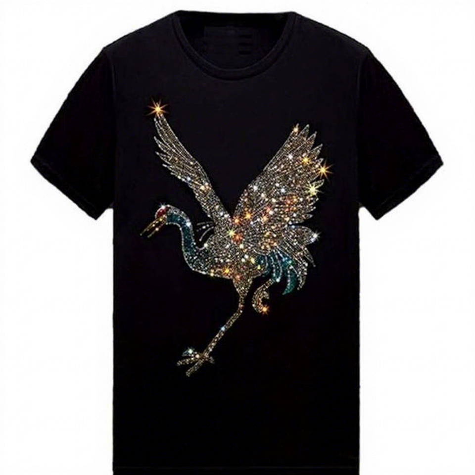 Último Diseño NUEVO, Camisetas de Verano con Pedrería, 100% Algodón, Manga Corta, Corte Regular, para Hombres, Camisetas de Moda