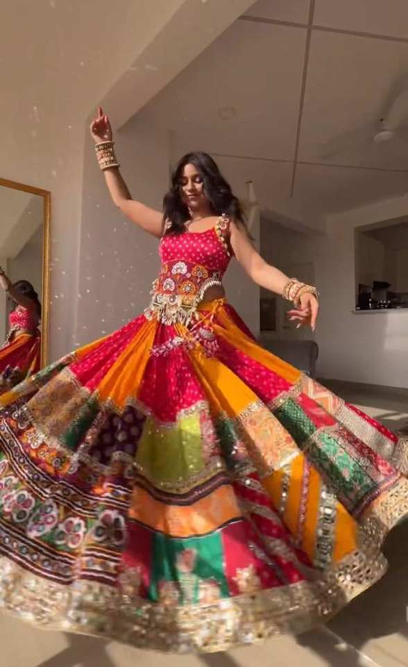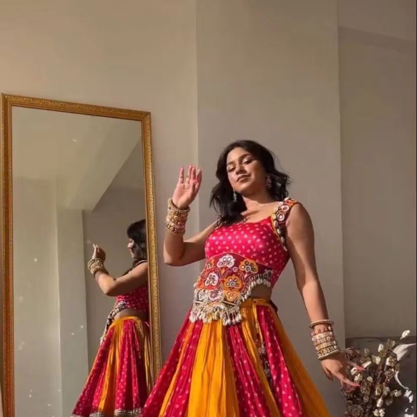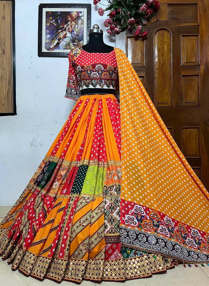 Nombre del producto:Impresión de algodón de muselina y trabajo de espejo real Lehenga Choli Dupatta