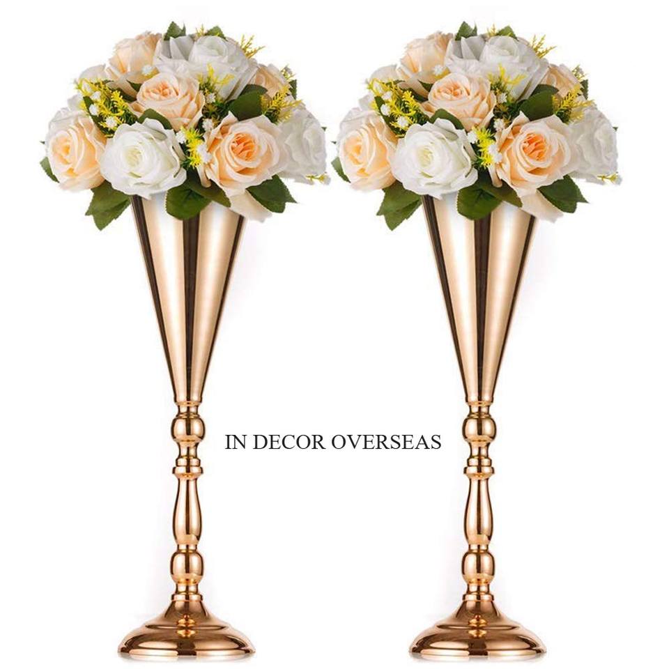 Último patrón, llegada, juego de Metal de calidad de lujo chapado en oro de alta calidad de 2 flores, jarrón de exhibición, centro de mesa de boda