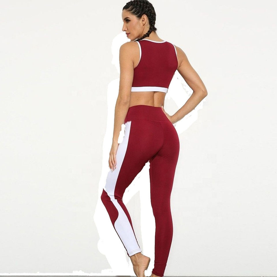 Conjunto de Yoga para Mujer de Alta Calidad, Transpirable, con Estampado a Cuadros, 2 Piezas, Cierre Elástico en la Cintura, Spandex/Nylon, Venta al Por Mayor Disponible