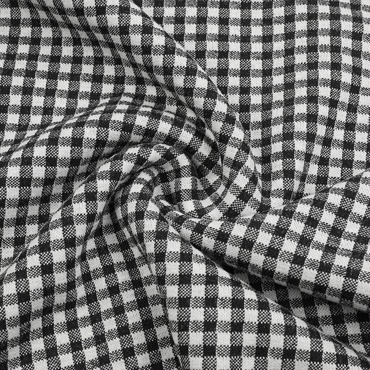 Tela de punto jacquard elástica teñida con hilo a cuadros, tela lisa con efecto slub, ecológica, de peso medio, para trajes de niños y niñas, tartán.
