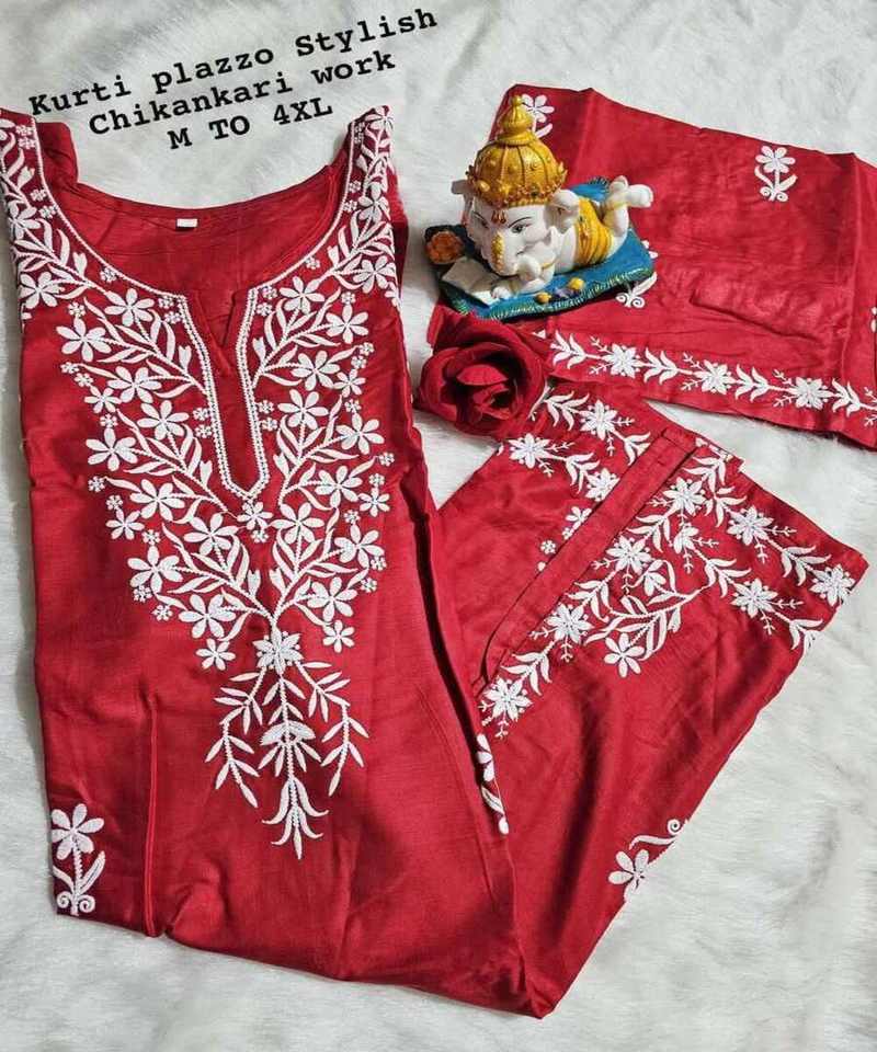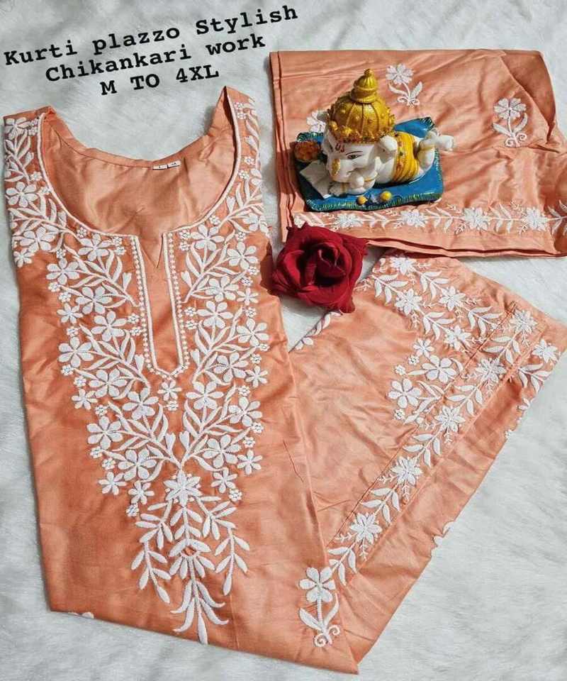 Conjunto de Kurta y Palazzo de Rayón y Algodón con Bordado Chikankari, Estilo Étnico Indio, Transpirable, para Mujer, Ropa de Oficina, Traje Amarillo