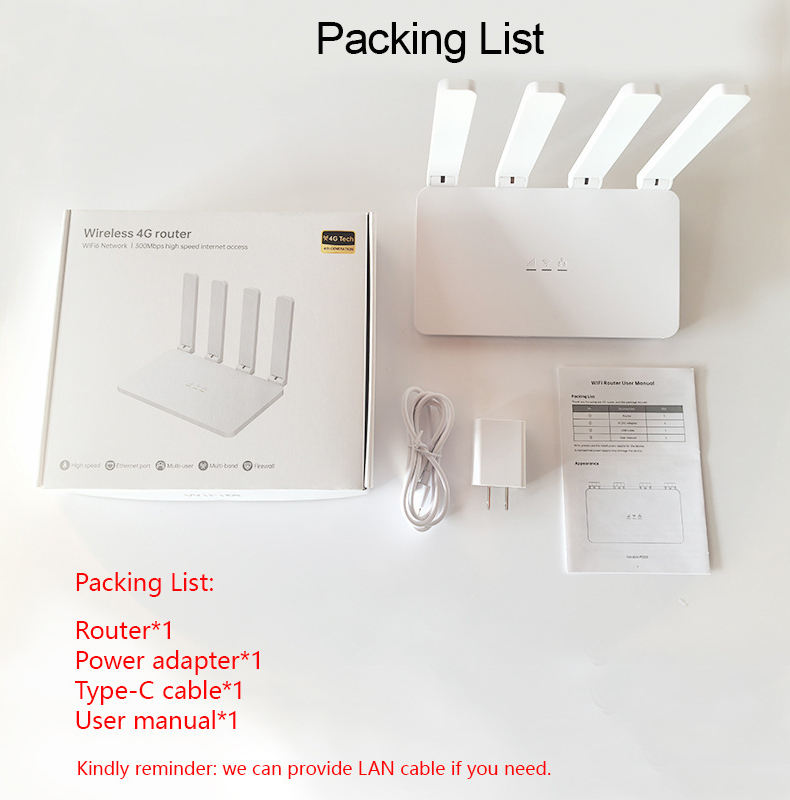 Nuevo Router WiFi 4G Inalámbrico LTE B41 con Cable Ethernet, Red 4G, Gran Capacidad de Memoria, Duradero, Alta Velocidad, WEB Cat4
