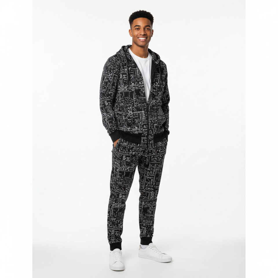 Chaqueta Deportiva con Cierre de Cremallera, Diseño de Ribete OEM, Conjunto de Pantalón y Chaqueta Deportiva, Invierno, Casual, Estampado, Cortavientos, 100% Algodón